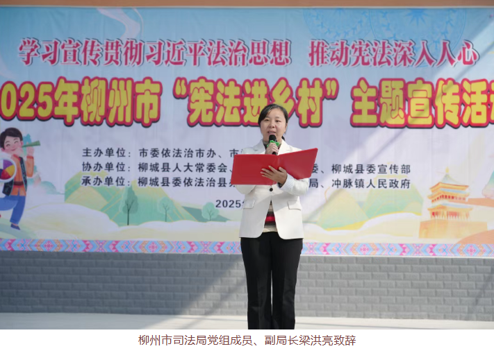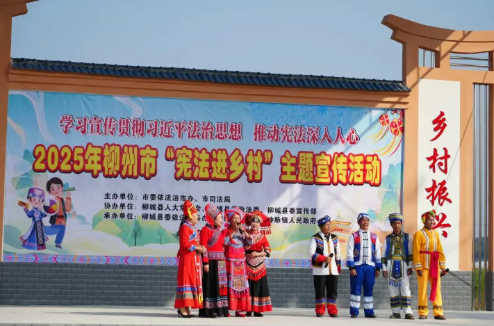 12月9日,柳城县冲脉镇壮欢歌圩广场欢声不断、歌声飞扬,由市委依法治市办、柳州市司法局主办,柳城县委政法委、柳城县委宣传部协办,柳城县委依法治县办、柳城县司法局和冲脉镇政府承办的柳州市宪法进乡村主题活动在此启幕。活动以“骨干培训+文艺演出+法律咨询+IP互动”四位一体模式,将宪法精神与壮乡文化、趣味互动深度融合,为当地村民送上了一场接地气、有温度、趣味性强的法治盛宴。