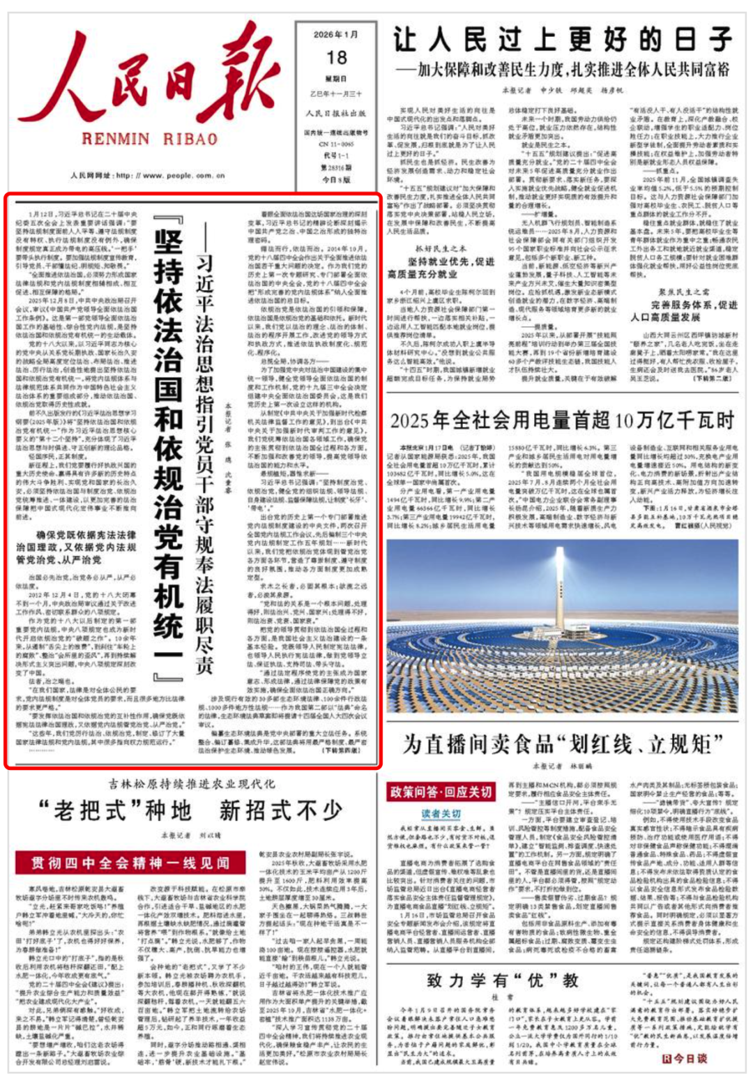 截至2025年12月底,我国现行有效法律308件,行政法规和监察法规600余件,地方性法规超过1.5万件……善于使党的主张通过法定程序成为国家意志,迈向良法善治的步伐更加坚实有力。