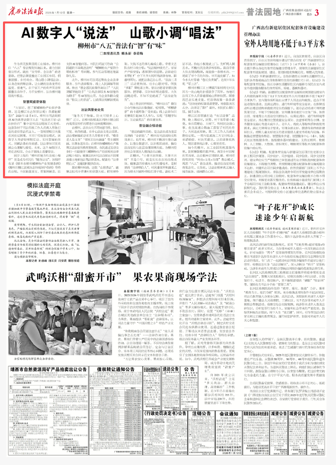 广西法治日报|柳州市:AI数字人“说法” 山歌小调“唱法”
