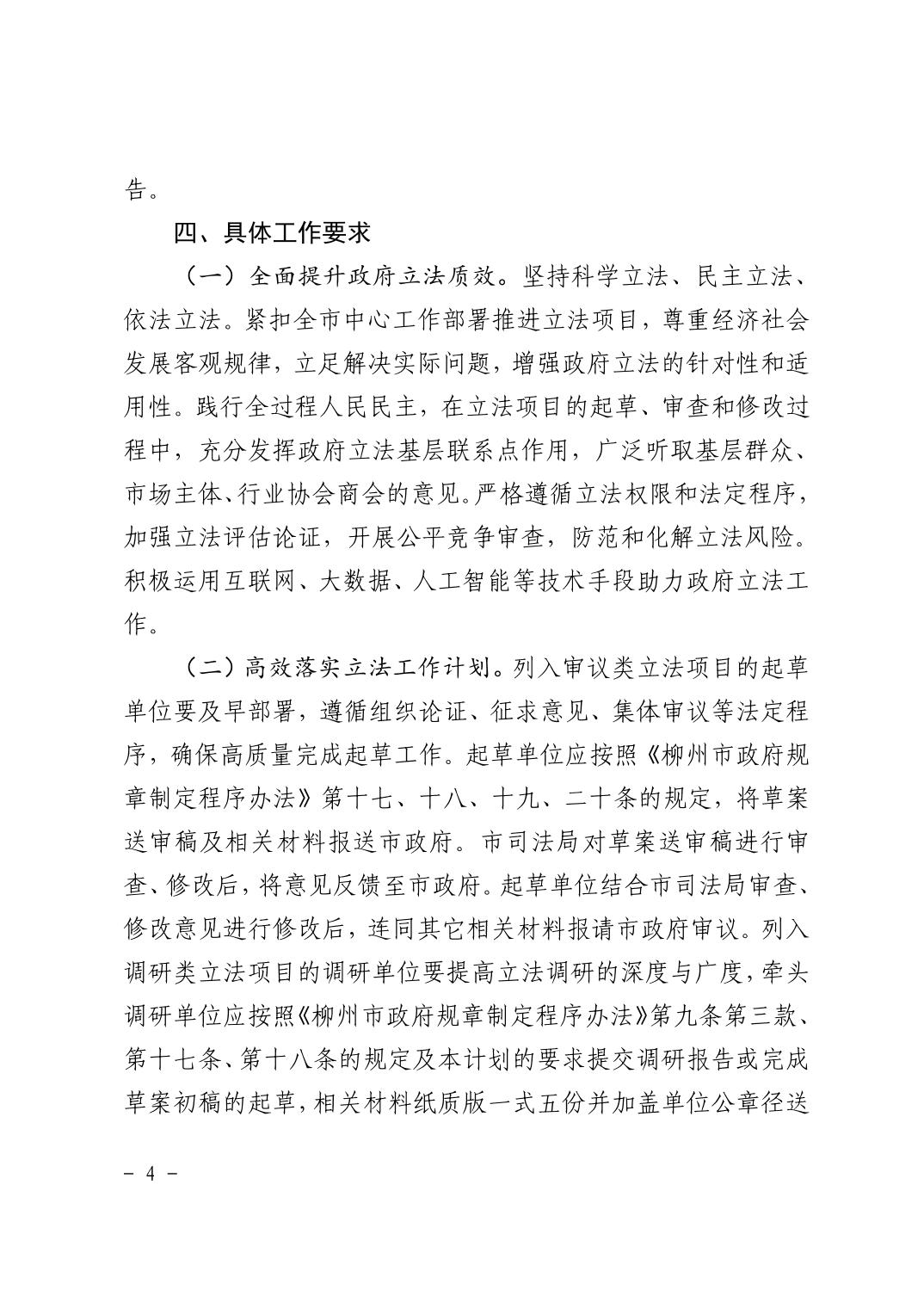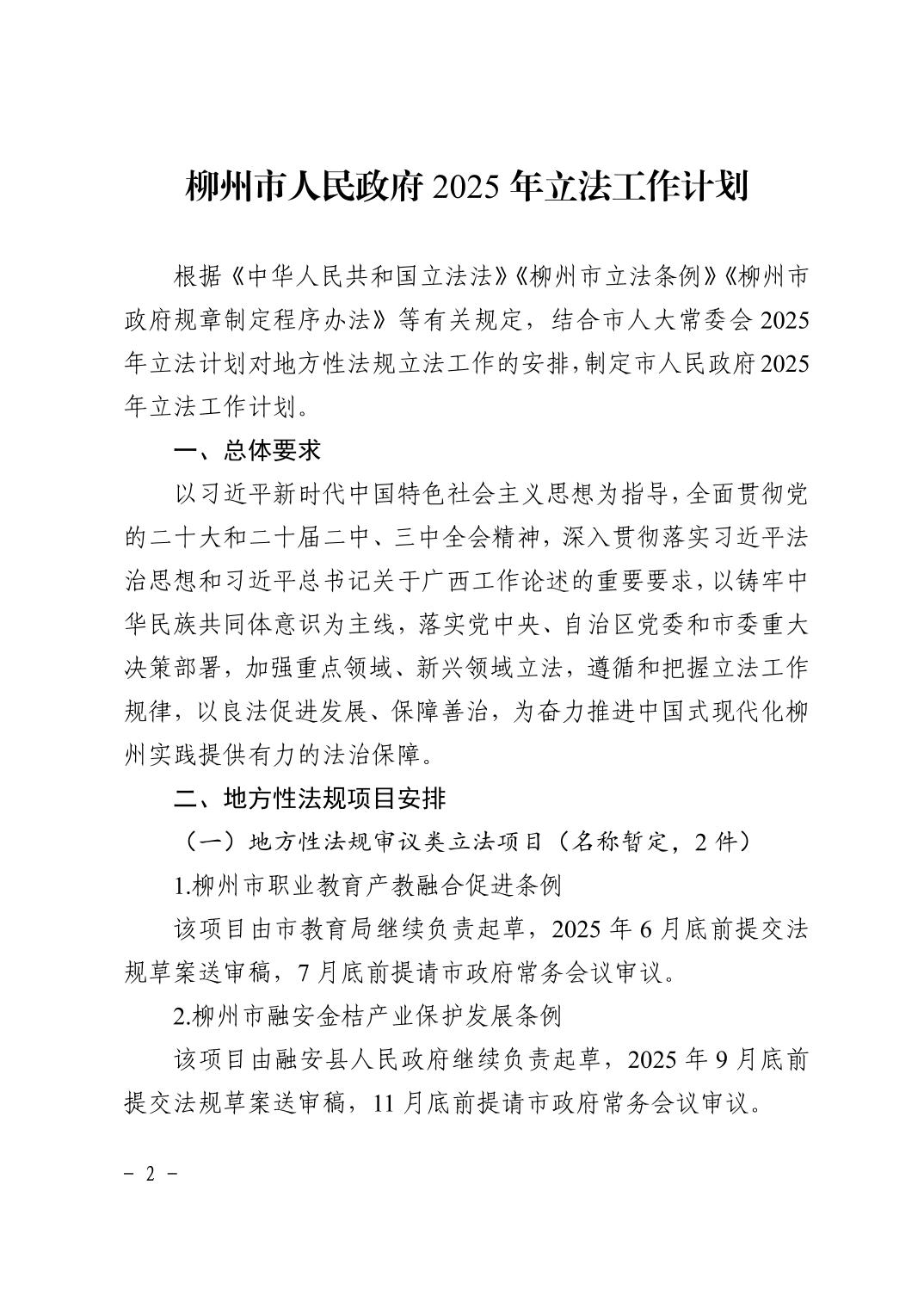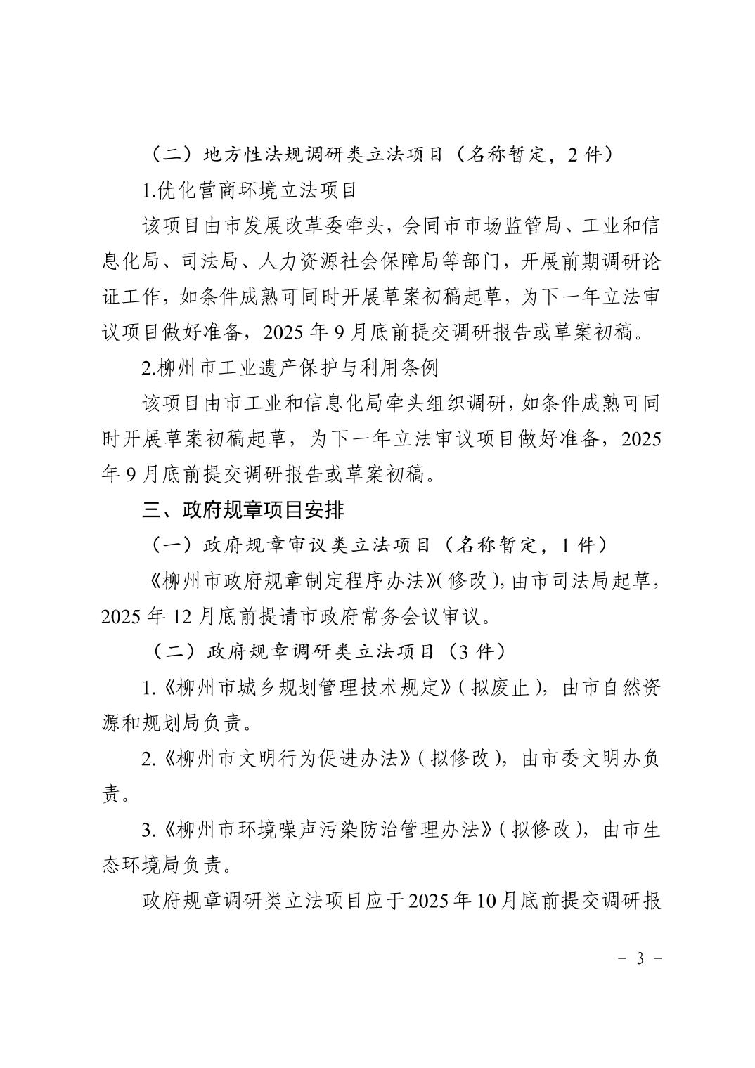 柳政办〔2025〕19号柳州市人民政府2025年立法工作计划的通知
